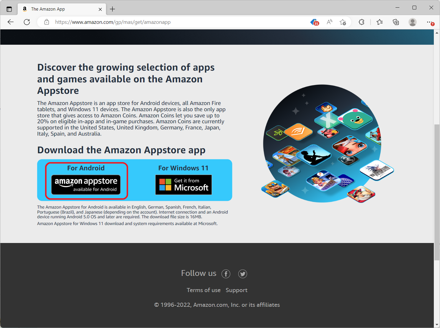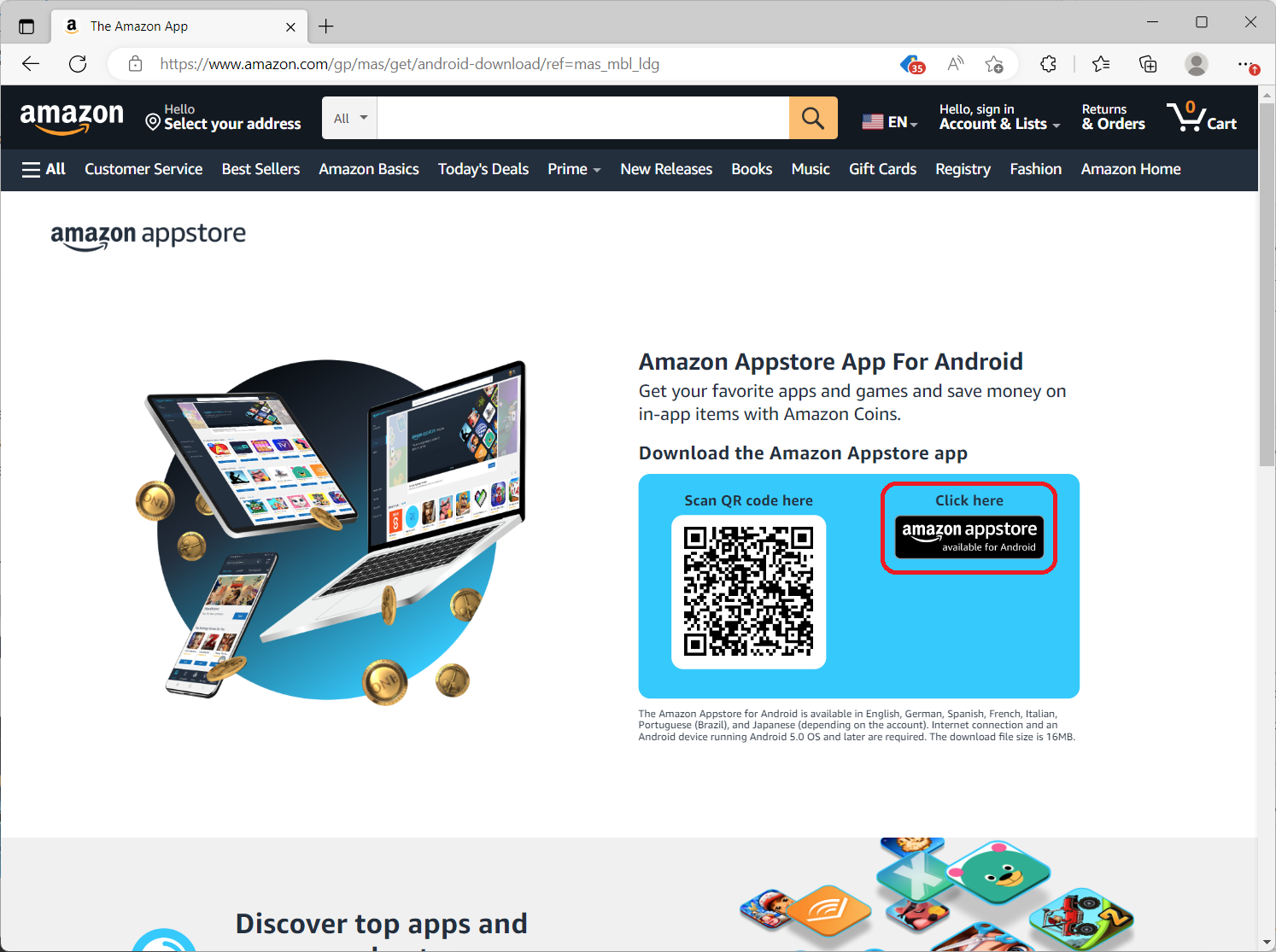 1. Navigate to https://www.amazon.com/gp/mas/get/amazonapp and download the Amazon Appstore App for Android.