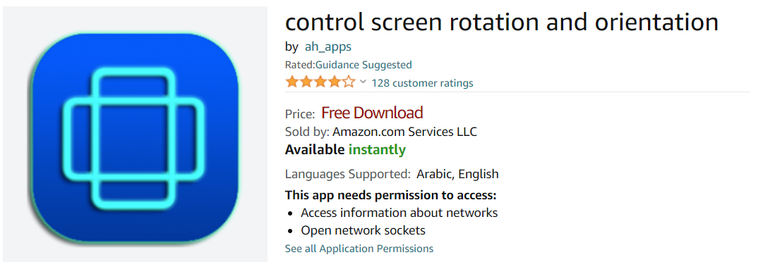 5. Search for control screen rotation. The App publisher is ah_apps. Tap Get to install the app. You can find the app here as well.