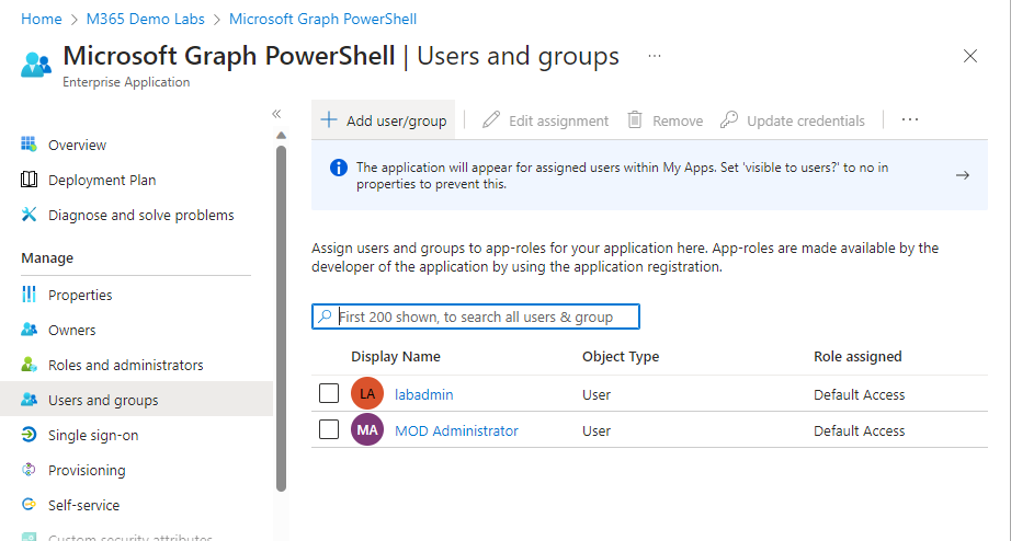 The user has now been assigned the role and should be able to use the value meal Microsoft Graph PowerShell to interact with the tenant.